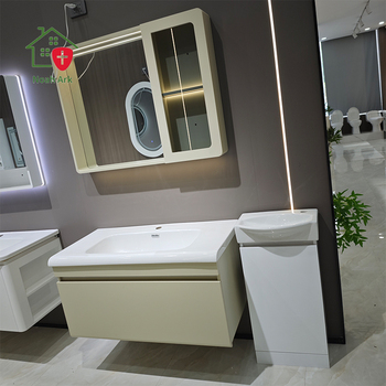 Goose-yellow bathroom cabinet fresh style beehive mirror cabinet large drawer washbasin white ceramic basin
